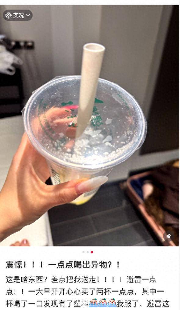 网友反映在一点点奶茶中喝出塑料异物 门店回应:查看监控后系备料贴纸误入会积极处理